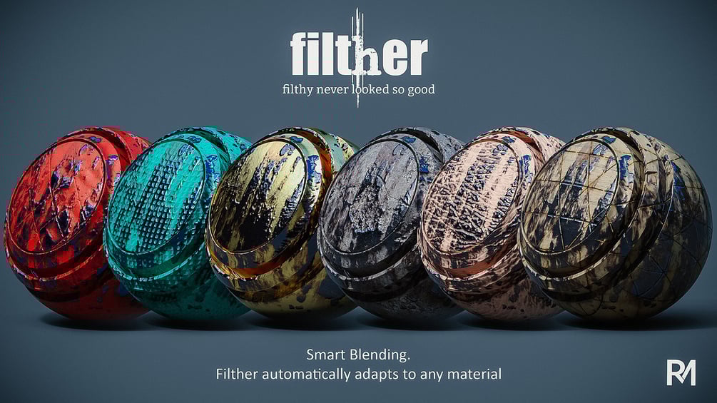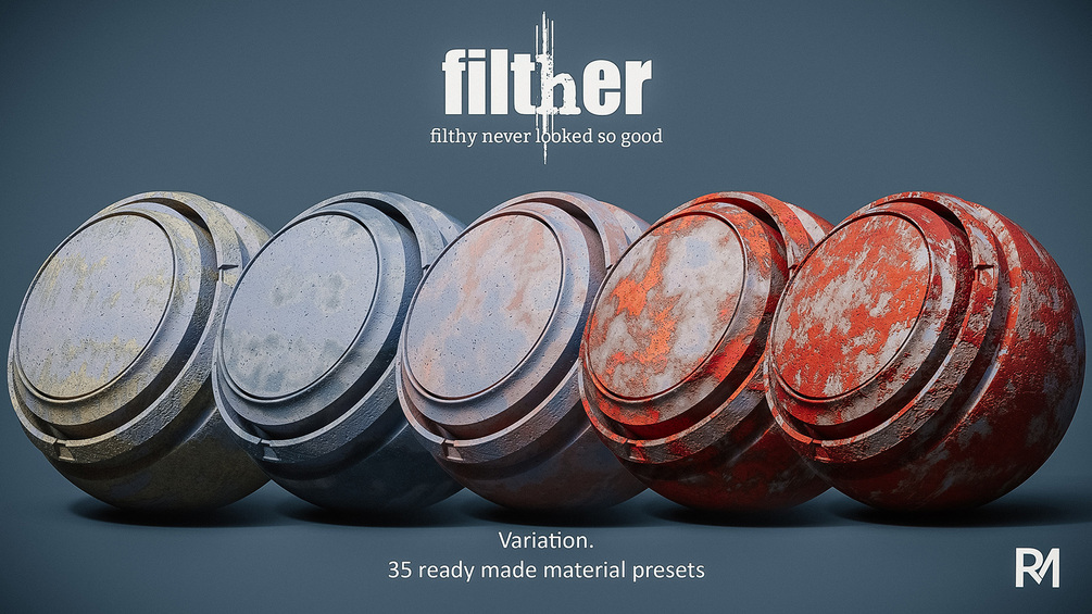 Add fully procedural dirt and filth to any material for a fast and beautiful result that is easily customised. Get infinite variation quickly using automatic smart blends.